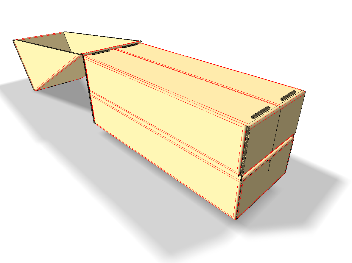 Per al nostre pack hem utilitzat el cartró ondulat de canal 3 (C3), aquest material es compon de dos a tres papers o cartronets encolats entre si i el paper que s’ondula (fluting), arriba teòricament a uns 3 mil·límetres d’altura produint un complex d’alta resistència, segons els papers i cartronets empleats.