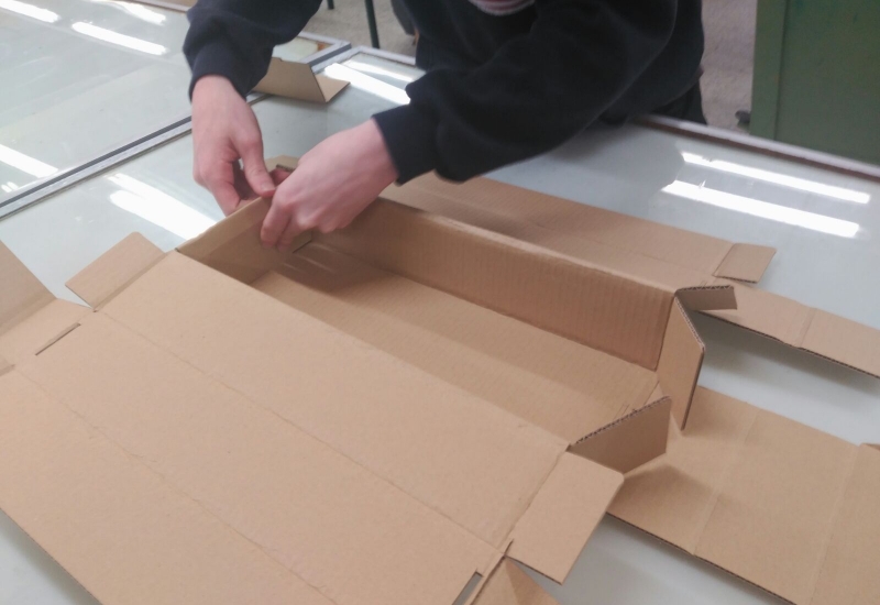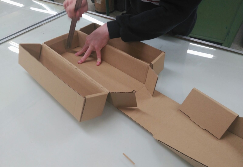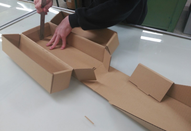 La seva aplicació és molt diversa com en el cas anterior i es pot utilitzar en els mateixos casos que amb el material ondulat C3, nosaltres la utilitzarem per a elaborar petits compartiments i caixes que ajudaran a la distribució de les diferents peces dins del pack creat amb el material C3.